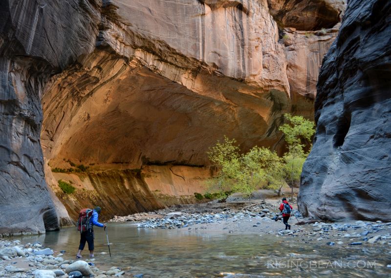 Besides proper footwear, hiking poles also help maintain your footing as the river bottom is uneven at times, while the river flow will threaten your balance. Used properly, the hiking poles will actually propel you and help you complete the hike faster and with less energy expended. At the minimum, go in with any hiking stick, especially if you’re carrying a camera. They’re also useful for some of the more strenuous hikes in Zion, such as Angel’s Landing.