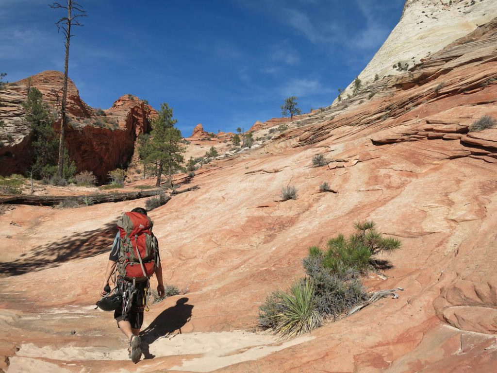 I found this place in Zion National Park that looked like a good spot to film a dance instruction video. While I was filming, a small group of what appeared to be climbers walked past me carrying minimal gear, a short rope, and wearing wetsuits. I asked them where they were going, and they told me Keyhole Canyon, which is a technical slot canyon I was looking for.