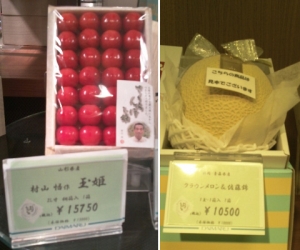 Japan is not as expensive as one might think. Sure, there are¥15750 ($150) gift cherries, ¥10500 ($100) gift melons, and other expensive gift fruit you can buy in department stores, but regular supermarket fruit costs more or less the same as North America. Sushi is much cheaper in the supermarkets. There’s also this nice chain I frequented, Lawson 100. It’s a dollar food store with good quality and fresh food!